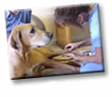 Hip Dysplasia (HD): a malformation of the hip (ball and socket) joint; frequently resulting in luxation (dislocation) of the hip, pain, muscle atrophy, degenerative osteoarthritis, instability and lameness. Hip Dysplasia is most common in large and giant breeds, with a genetic component. Depending on the severity, surgery and/or rehab are treatment options, with considerations for weight control, exercise, anti-inflammatory drugs and chondroprotective agents. Avoid jumping and extension of the hip!