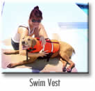 is used in the rehabilitation of canines with both orthopaedic and neurological conditions; as well as for physical conditioning programs. It can be a valuable adjunct to a well-rounded Rehab program and can help dogs move limbs that are too weak to move on land. The buoyancy effect decreases the loading of joints while providing therapeutic facilitation of active movement and resistance for strengthening. Swimming or walking on an underwater treadmill are not substitutes for other therapeutic exercises or weightbearing, balancing or proprioceptive activities; and do not provide for the same range of motion as land activities. Water temperatures must be appropriate for the dog, the condition and the desired effects. Water levels can be varied to achieve specific results for strengthening, progressive weightbearing and gait training. Aquatic therapy can be carried out in pools, ponds, lakes, bays, at beaches or on an underwater treadmill; and in cases of smaller dogs, can be performed in sinks, bathtubs, children’s wading pools and various types of plastic containers. Swim vests are available if needed.